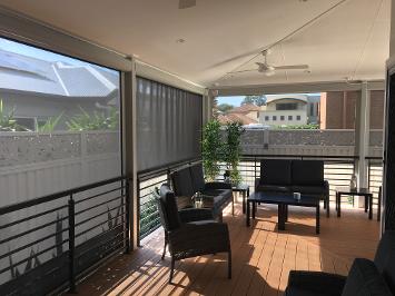 Wind and Light Sensor options on remote control Side Channel Blinds can protect your outdoor space and themselves. The light sensor tells the Blind/s that its time to get to work, whilst the wind sensor tells the Blind/s that it's getting dangerously blowy and it's time to retract. A good option for those who travel or are not at home much. The automation of the blinds makes it look as though there is someone home everyday.